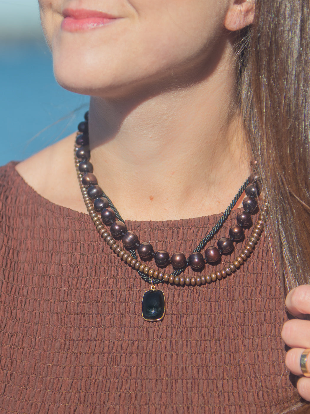 - Freshwater pearls, silk thread