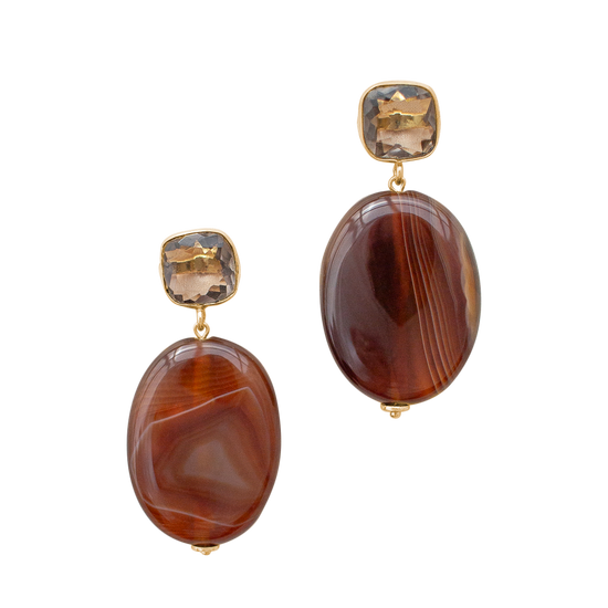 - Smoky quartz and banded agate gemstones