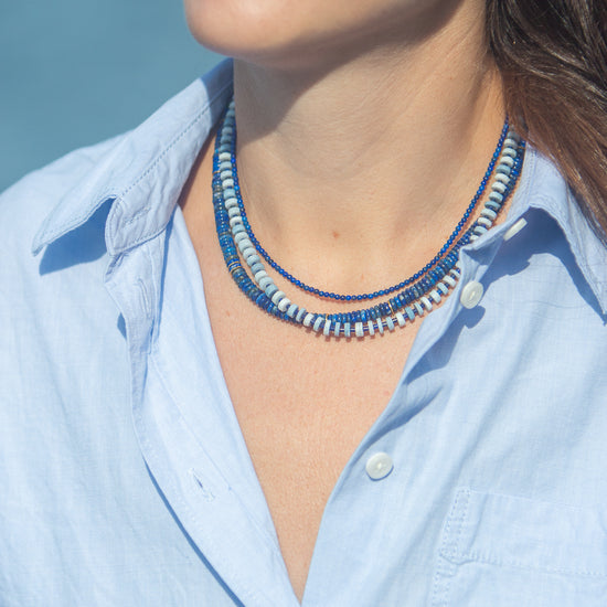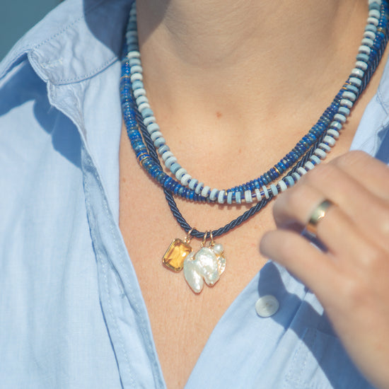 - Blue opal and lapis lazuli gemstones, freshwater pearl