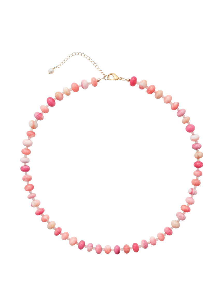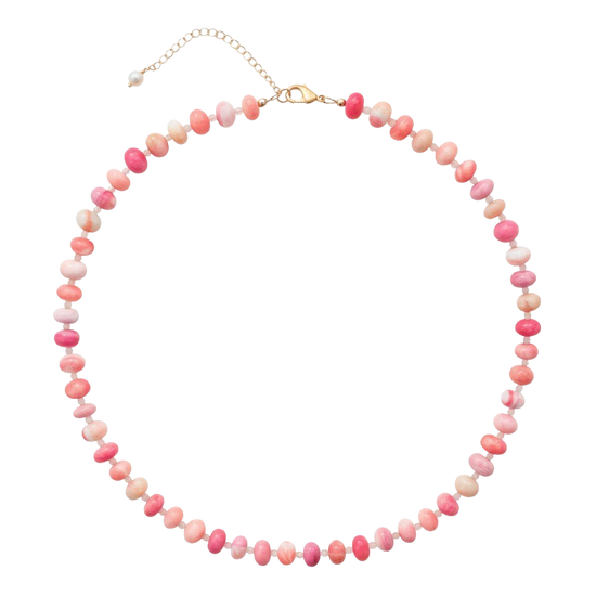 - Peach opal and rose quartz gemstones, freshwater pearl charm
