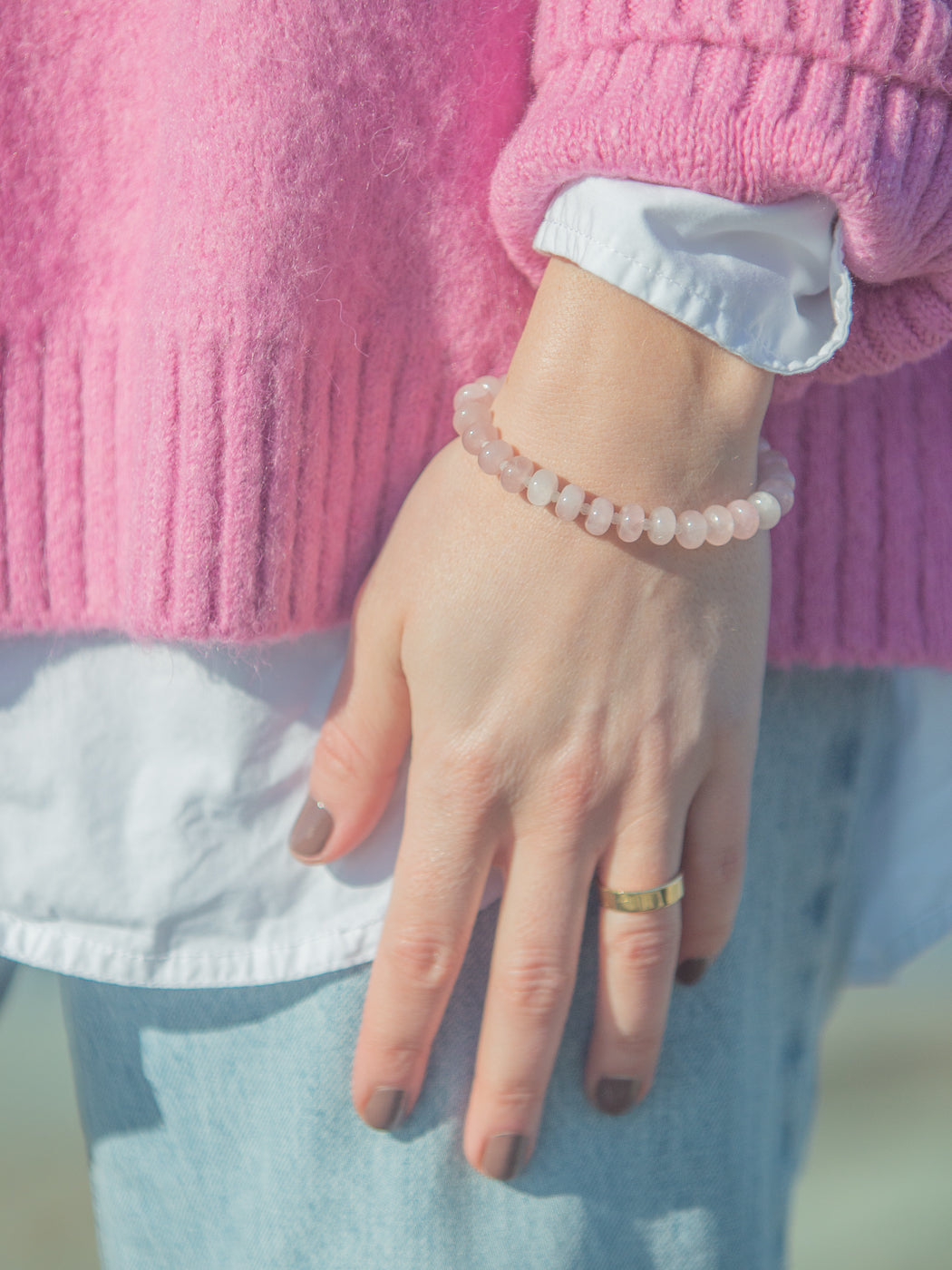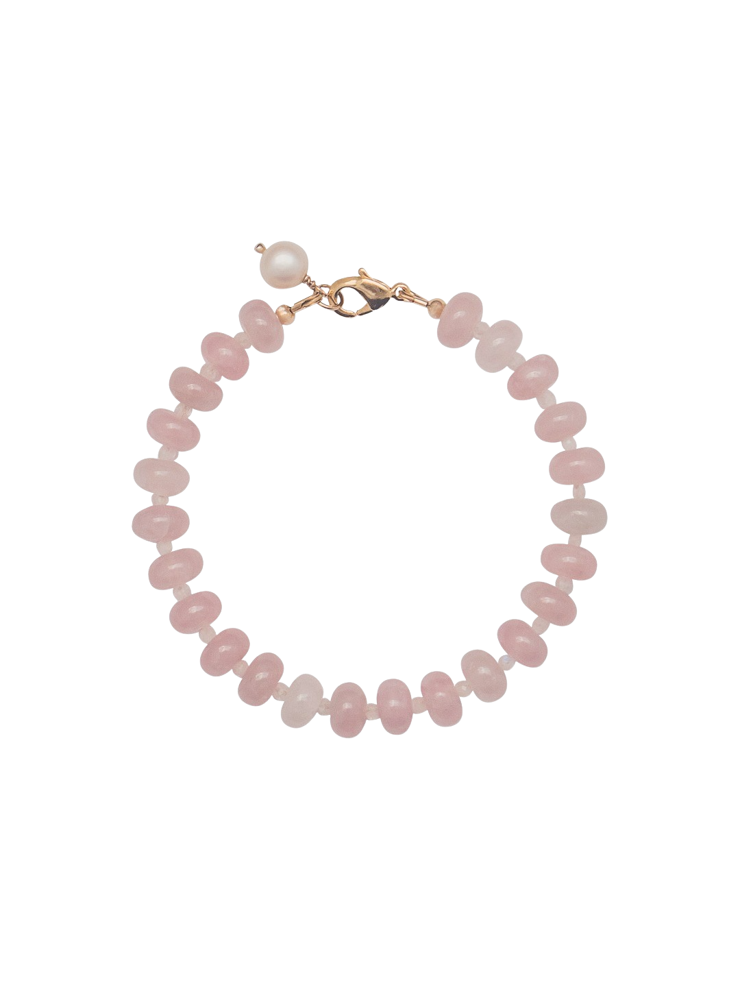 - Rose quartz and moonstone gemstones, freshwater pearl